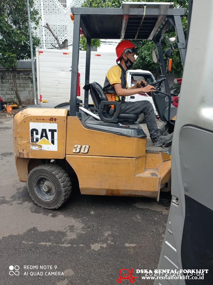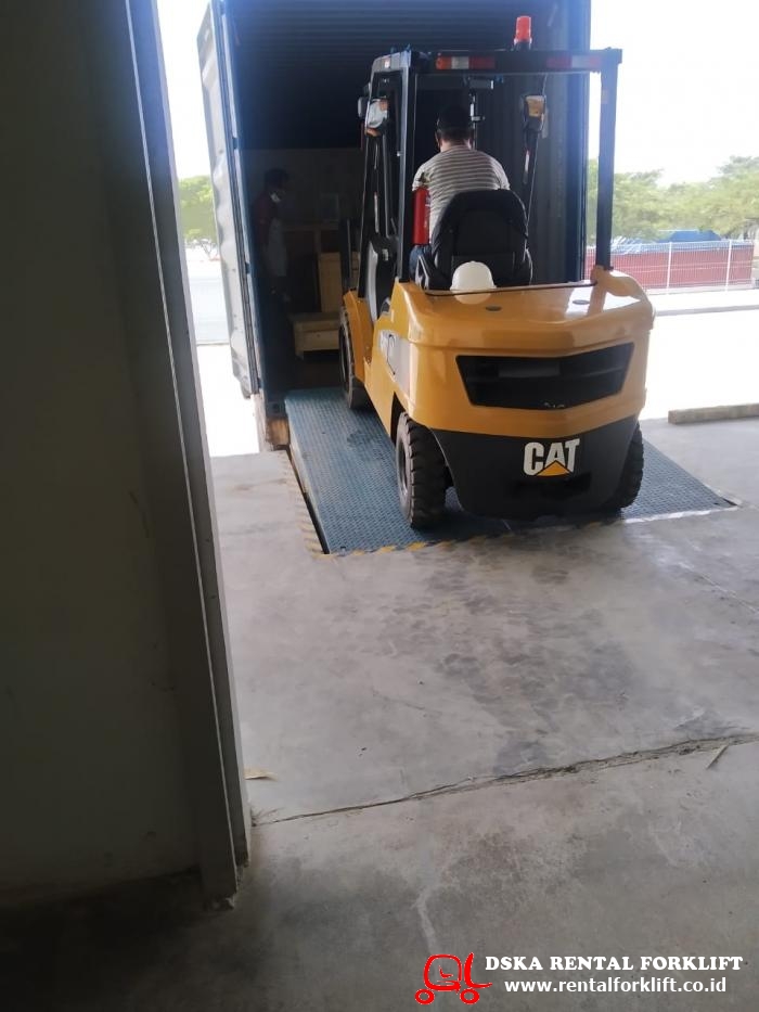 Unloading mesin, Unit Caterpillar 3 Ton lokasi PT Hwaseung Automotive, Kawasan GIIC Deltamas